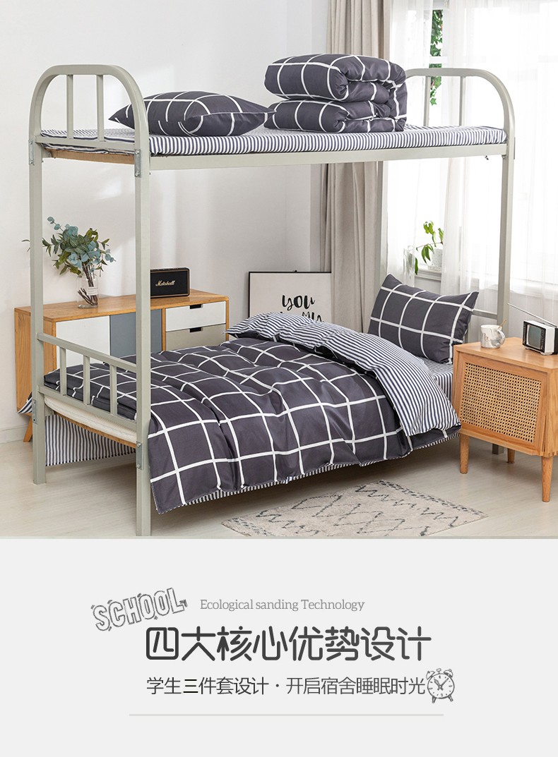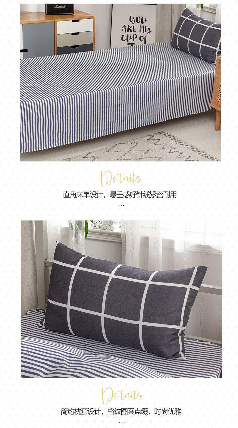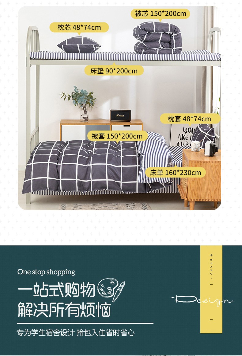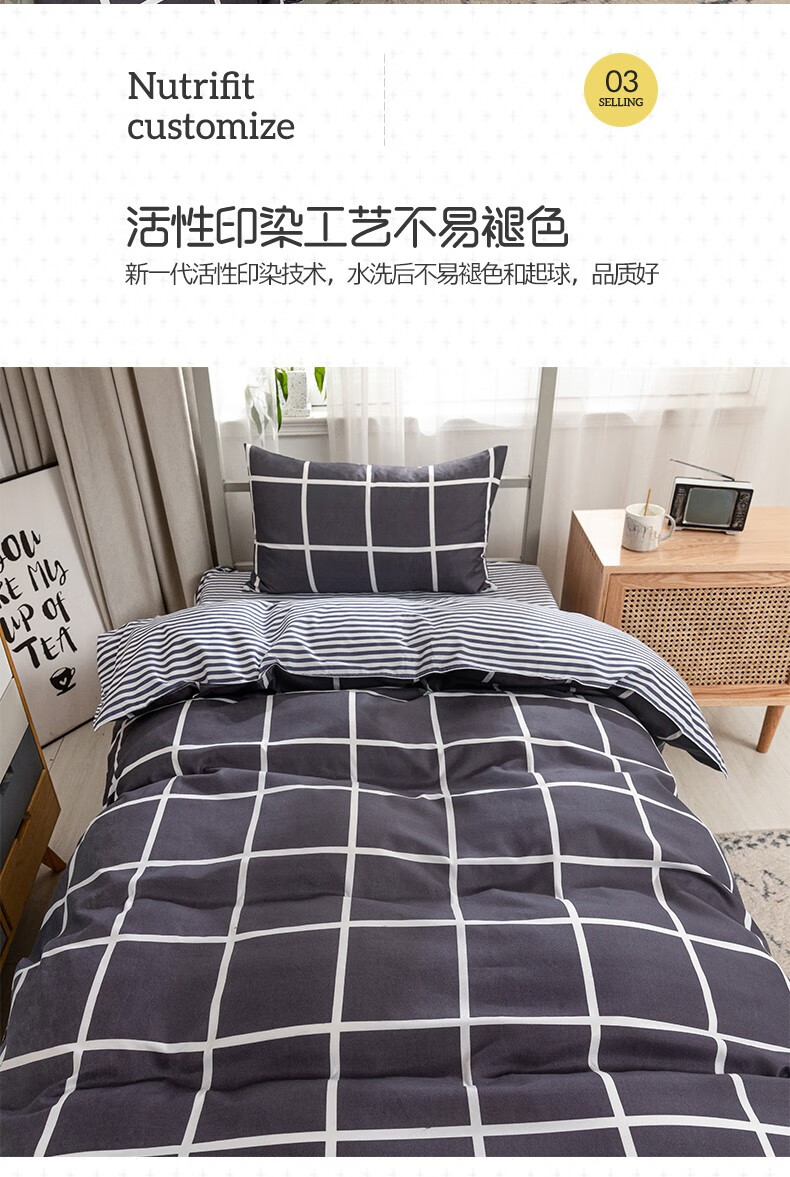 家纺 三件套学生宿舍0.9米寝室全套床上用品单人被套被芯床单床垫枕套枕芯大学生上下铺床品 简约-HR 学生宿舍三件套【1.5*2米被套+床单+枕套】