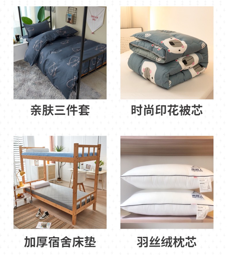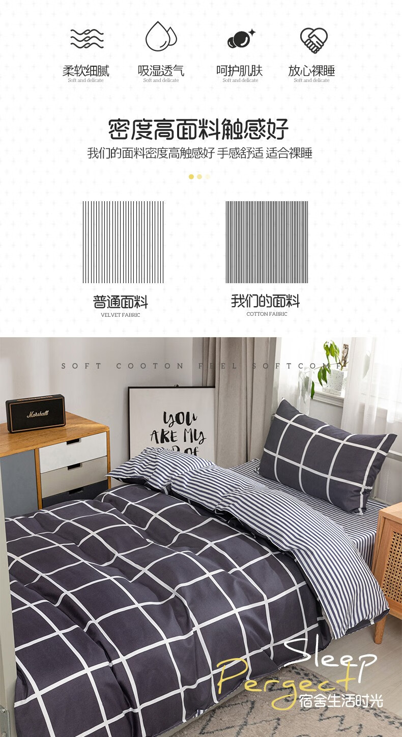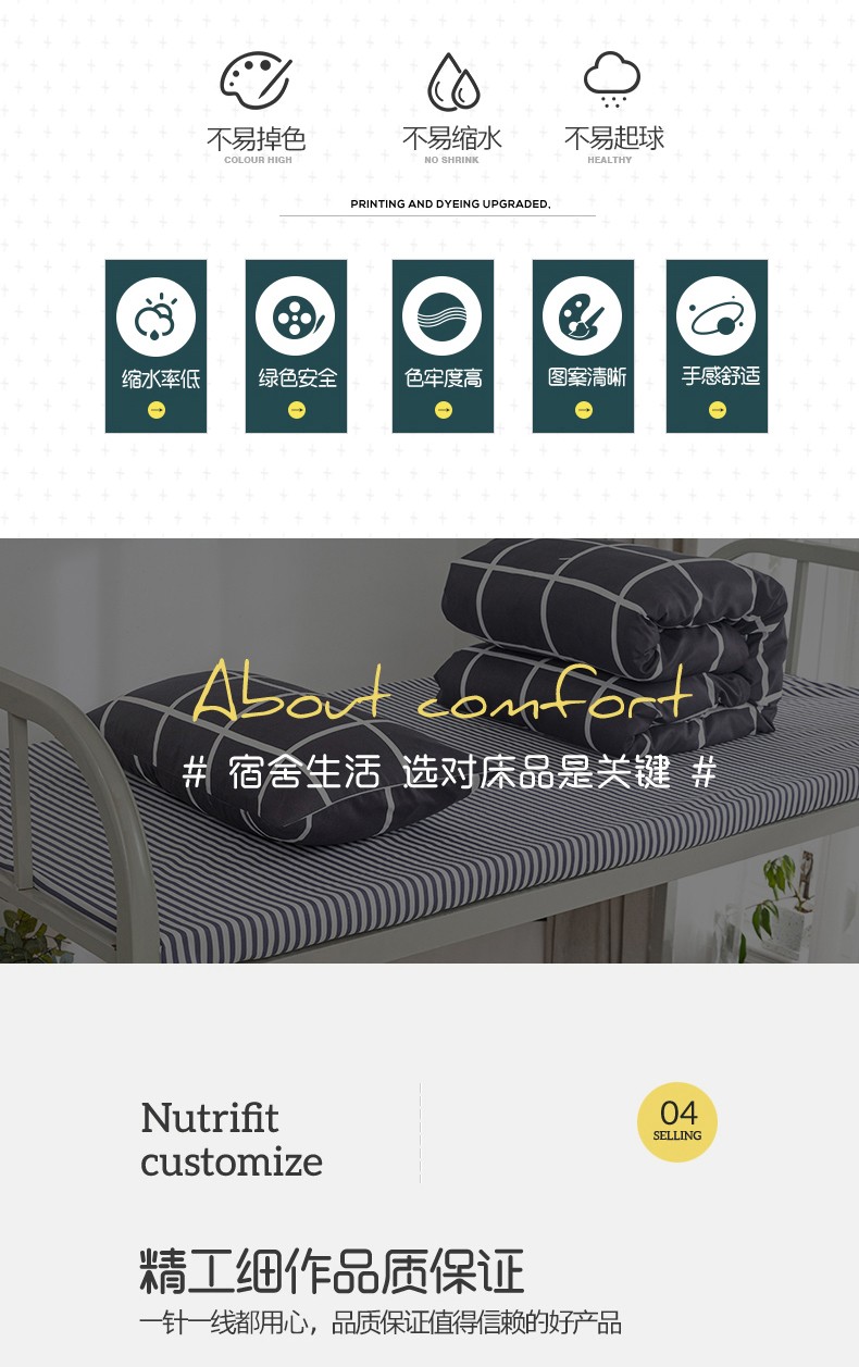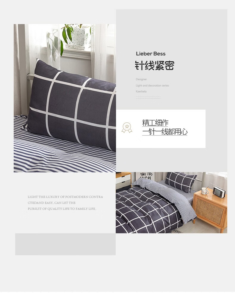 家纺 三件套学生宿舍0.9米寝室全套床上用品单人被套被芯床单床垫枕套枕芯大学生上下铺床品 简约-HR 学生宿舍三件套【1.5*2米被套+床单+枕套】
