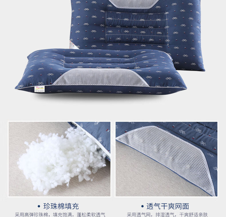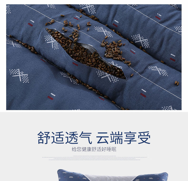 决明子枕头枕芯单只装/2只装成人家用颈椎枕头一对装 (决明子)藏青 【一对装】