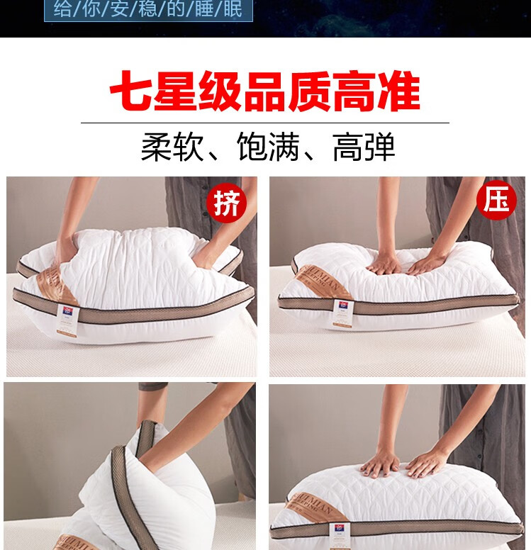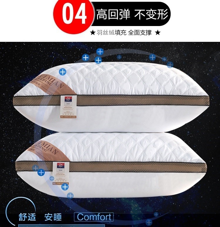 枕芯一对家用枕头一对套装 羽丝绒立体枕耐压五星级酒店枕头高枕双人枕头睡眠枕头不含枕套48*74